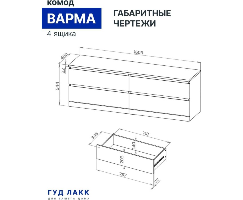 Корпусная мебель ГУД ЛАКК S00265 Варма 4Д комод 160х54х40 белый (2 пак.)