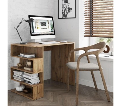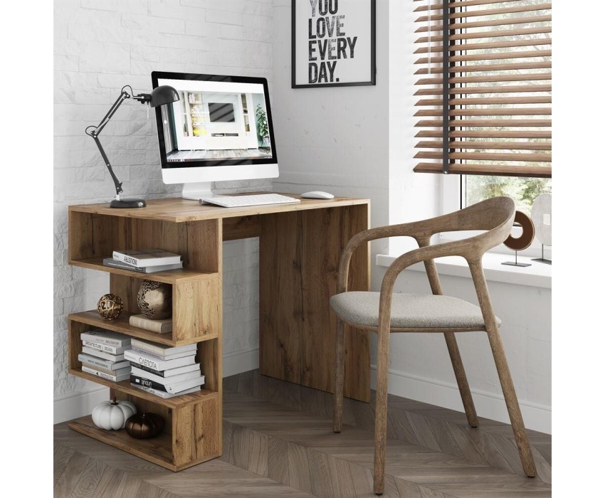 Письменный стол оборудован широкой столешницей и четырьмя полками. Основание и столешница изготовлены из ЛДСП 16 мм.. Три цвета на выбор - Белый, Дуб Сонома, Дуб Вотан. Функционально - широкий модульный ряд позволяет создавать любой интерьер. Эстетично - все фасады имеют скошенный край. Практично - занимает мало места за счёт своей прямоугольной конфигурации и при этом довольно вместителен. Размер изделия (ШхВхГ) 90х73,9х56 см.