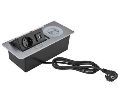 Особенности: с кабелем 1.8м, 1 евро гнездо, 2 USB разъем А, беспроводная зарядка. Цвет: серебристый. Размер: 26.5x11.8x6.5. Материал: металл. Тип: Розетка. Назначение: для столешницы. Габариты упаковки (ед) ДхШхВ: 0.28x0.15x0.11. Гарантия: 12 мес.