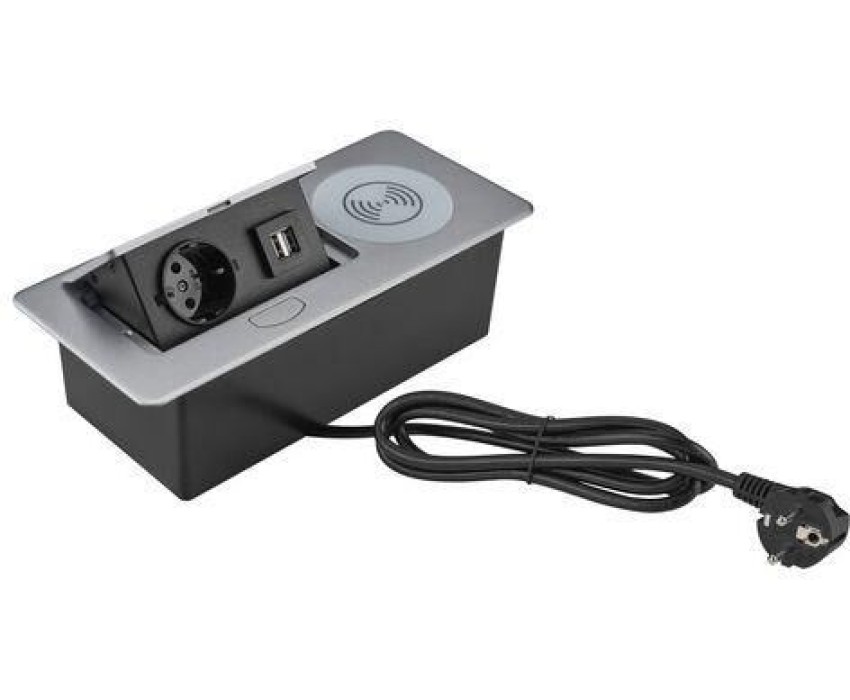 Стол компьютерный CACTUS Розетка CS-SOCKET-USBA-WLESS, для столешницы, серебристый