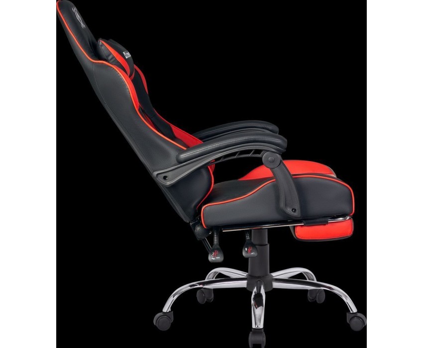 Кресло для геймеров, настраиваемые подлокотники, механизм раскачивания - снижает нагрузку на позвоночник, регулировка высоты, стальная рама, раскладывание спинки на 180°, максимальный вес - 120 кг, размер кресла - 56х51х130-140 см.
