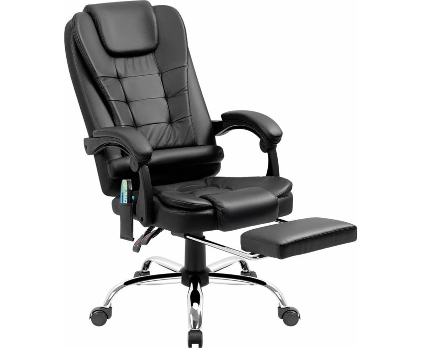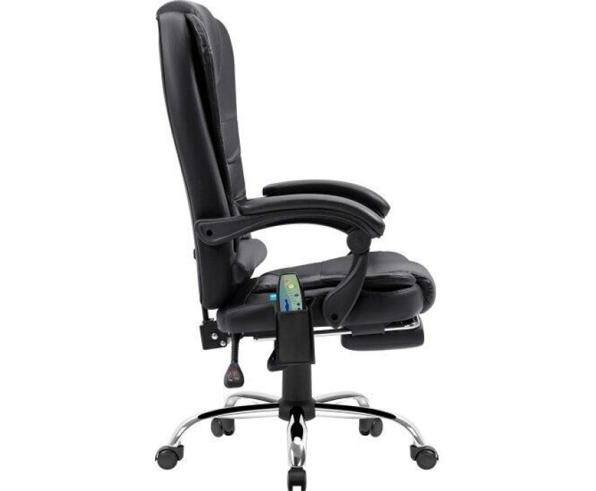 Компьютерное кресло с функцией вибромассажа - у данной модели 7 встроенных массажных головок. Высокий уровень комфорта обеспечивается за счет спинки, которая отклоняется до 135°, мягких подлокотников и подставки для ног. Выбирать тип массажа и регулировать его интенсивность можно с помощью пульта управления, которым комплектуется кресло.