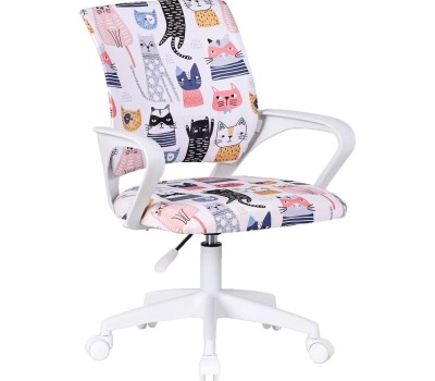 Кресло DEFENDER (64815) Fiesta белый+принт Коты,ткань,класс1