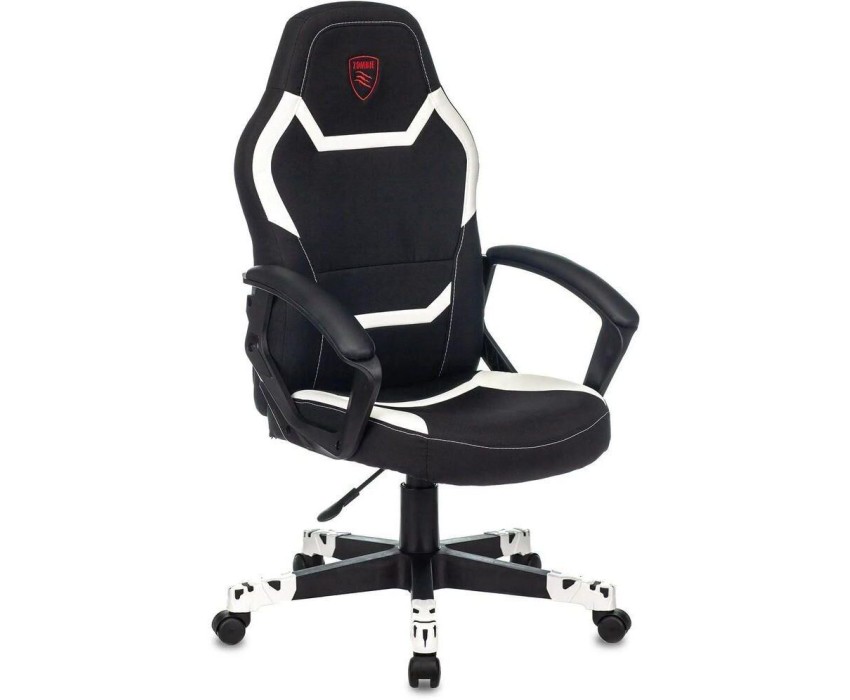 Кресло компьютерное игровое ZOMBIE Кресло игровое 10, на колесиках, ткань/экокожа, черный/белый/белый [ 10 white]