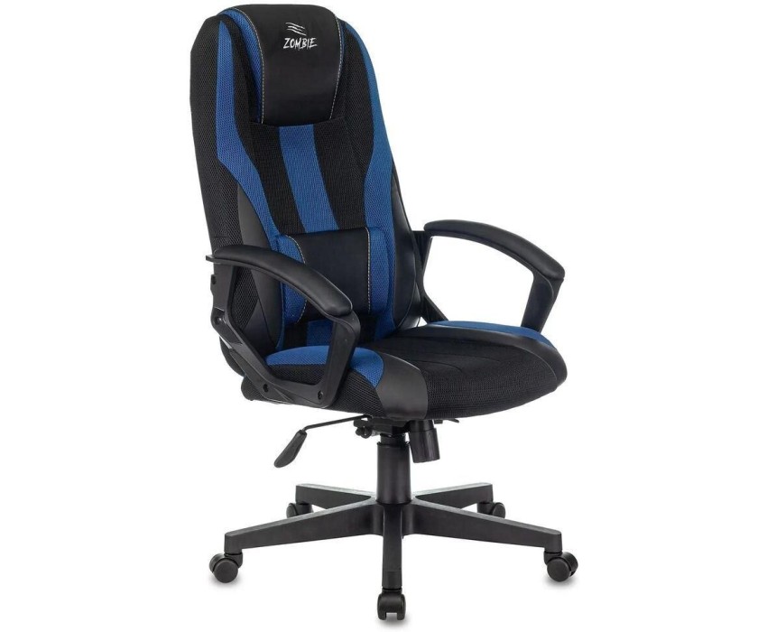 Кресло компьютерное игровое ZOMBIE Кресло игровое 9, на колесиках, ткань/экокожа, черный/синий [ 9 blue]
