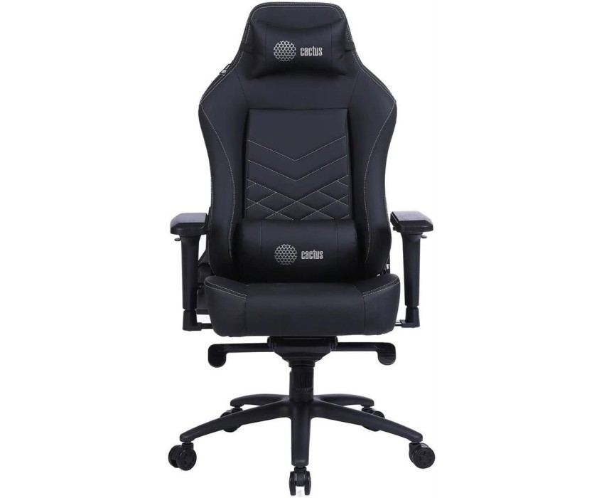 Кресло компьютерное игровое CACTUS Кресло игровое CS-CHR-0112BL-M с вибромассажем, на колесиках, экокожа, черный