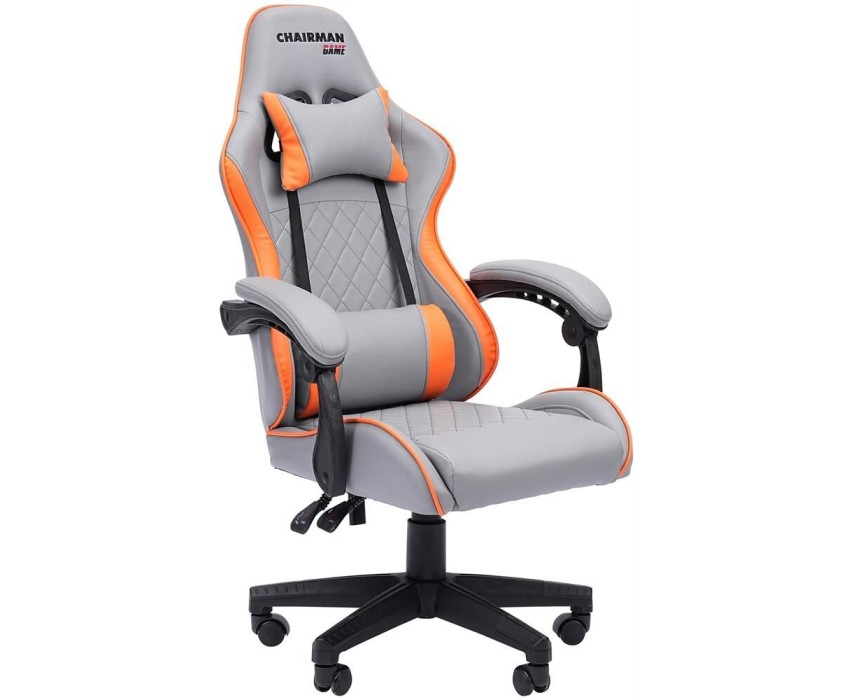 Кресло компьютерное CHAIRMAN Офисное кресло CH28 экокожа, серо-оранжевый (7162897)