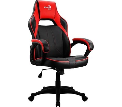 Кресло компьютерное игровое AEROCOOL Кресло игровое AC40C AIR, полиуретан, до 150кг, топ-ган, фиксированные подлокотники, черный/красный/красный