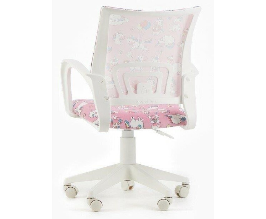 Тип основания: на колесиках. Подлокотники: есть. Ограничение по весу: 120. Материал обивки: ткань. Цвет (спинка): розовый. Рисунок: единороги. Цвет (пластик): белый. Материал основания: пластик. Диаметр колес: 50. Материал колес: пластик. Высота кресла MIN: 890. Высота подлокотника MIN: 190. Высота с подлокотниками MIN: 635. Высота сиденья MIN: 445. Глубина сиденья MIN: 440. Диаметр креста: 600. Ширина с подлокотниками: 580. Ширина сиденья: 480. Габариты упаковки (ед) ДхШхВ: 0.576x0.261x0.55. Вес упаковки (ед): 8.81. Материал подлокотников: пластиковые. Гарантия: 24 мес.. Цвет обивки: мультиколор. Эргономика и комфорт: поясничная поддержка. Регулировка: высоты (газлифт). Конструкция: подлокотники. Ограничение по весу: 120 кг. Материал обивки: ткань. Регулировка: высоты (газлифт). Эргономика и комфорт: поясничная поддержка. Тип установки: на колесиках