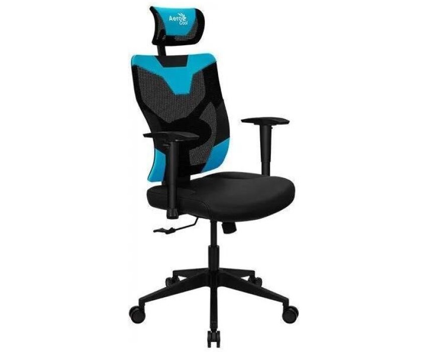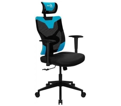 Кресло компьютерное игровое AEROCOOL Кресло игровое Guardian, экокожа/сетка, до 150кг, мультиблок, регулируемые 2D подлокотники, черный/голубой