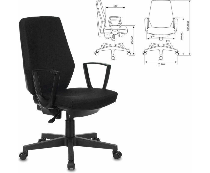 Тип основания: на колесиках. Тип механизма качания: пружинно-винтовой. Подлокотники: есть. Ограничение по весу: 120. Материал обивки: ткань. Спинка: отдельная от сиденья. Цвет (спинка): черный. Номер цвета: 38-418. Материал основания: пластик. Диаметр колес: 50. Материал колес: с накладкой PU. Высота кресла MIN: 930. Высота подлокотника MIN: 190. Высота с подлокотниками MIN: 590. Высота сиденья MIN: 400. Глубина сиденья MIN: 435. Диаметр креста: 700. Ширина с подлокотниками: 605. Ширина сиденья: 515. Габариты упаковки (ед) ДхШхВ: 0.82x0.324x0.663. Вес упаковки (ед): 14.7. Материал подлокотников: пластиковые. Гарантия: 24 мес.. Цвет обивки: черный. Эргономика и комфорт: механизм качания. Регулировка: высоты (газлифт). Ограничение по весу: 120 кг. Тип механизма качания: пружинно-винтовой. Регулировка: высоты (газлифт). Конструкция: подлокотники. Тип установки: на колесиках. Материал обивки: ткань. Эргономика и комфорт: механизм качания
