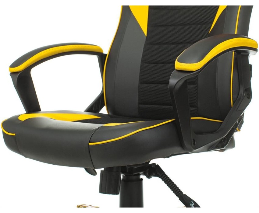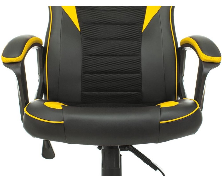Тип основания: на колесиках. Подлокотники: есть. Ограничение по весу: 120. Материал обивки: ткань/экокожа. Подголовник: отсутствует. Особенности: топган-люкс. Цвет (спинка): черный/желтый. Для геймеров: да. Материал основания: пластик. Диаметр колес: 50. Материал колес: с накладкой PU. Высота кресла MIN: 1120. Высота подлокотника MIN: 215. Высота с подлокотниками MIN: 665. Высота сиденья MIN: 450. Глубина сиденья MIN: 470. Диаметр креста: 700. Ширина с подлокотниками: 650. Ширина сиденья: 500. Габариты упаковки (ед) ДхШхВ: 0.82x0.32x0.65. Вес упаковки (ед): 14.9. Фиксация спинки: в любом положении. Мягкие накладки подлокотников: да. Гарантия: 24 мес.. Цвет обивки: черный/желтый. Эргономика и комфорт: механизм качания. Регулировка: высоты (газлифт), жесткости качания. Ограничение по весу: 120 кг. Регулировка: высоты (газлифт), жесткости качания. Материал обивки: ткань/экокожа. Тип установки: на колесиках. Конструкция: подлокотники. Эргономика и комфорт: механизм качания