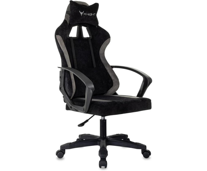 KNIGHT Кресло игровое Optimum, ткань, до 120кг, фиксированные подлокотники, черный/серый