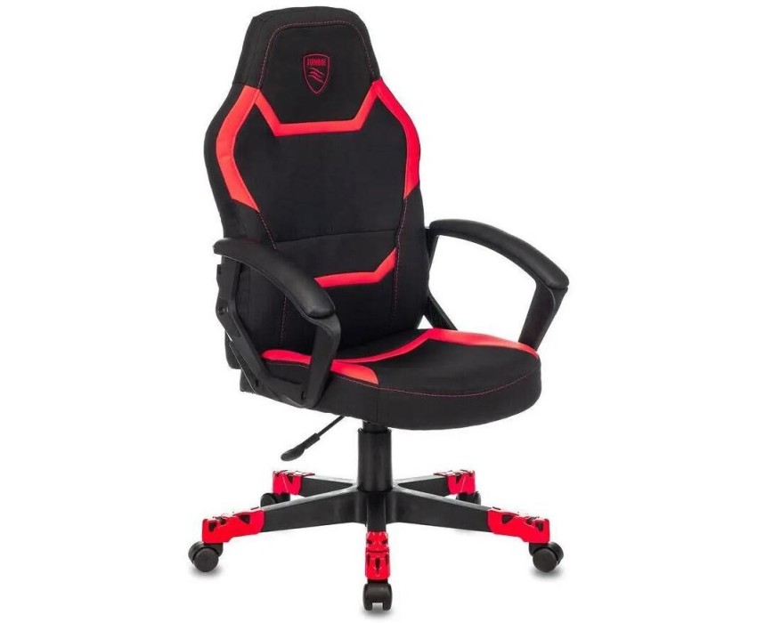 ZOMBIE Кресло игровое 10 черный/красный ткань/эко.кожа крестов. пластик