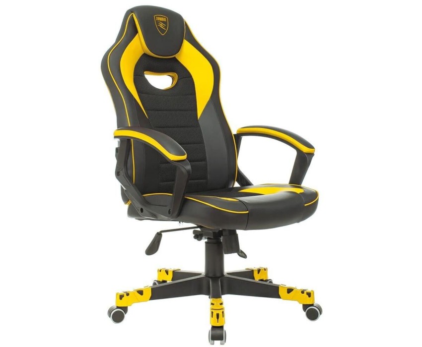 ZOMBIE Кресло игровое GAME 16 черный/желтый ткань/эко.кожа крестов. пластик
