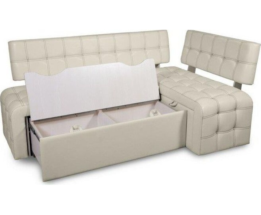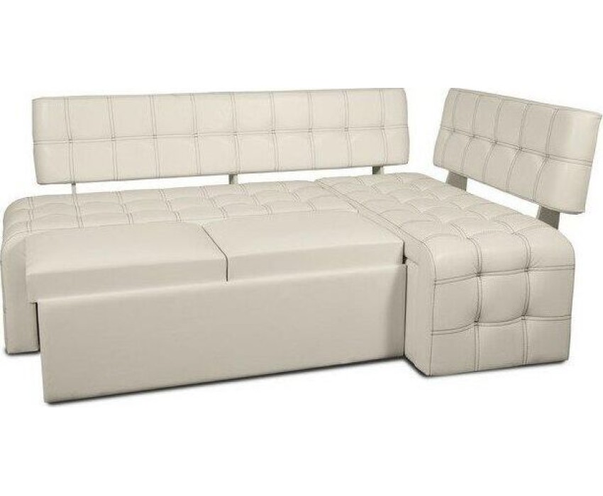 Угловой диван со спальным местом. Сборка универсальная: (направо и налево) Сиденье малой скамьи поднимается на газлифте, под ним короб для хранения. Под большой скамьей выдвигается ящик, который также образует ящик для хранения. Спальное место образуется за счет подушек, которые кладутся сверху на выдвижной ящик большой скамьи. Размер: ШхГхВ (2000х1320х840). Размер спальн.места (1800х965)мм. Цвет: Милк (молочный)