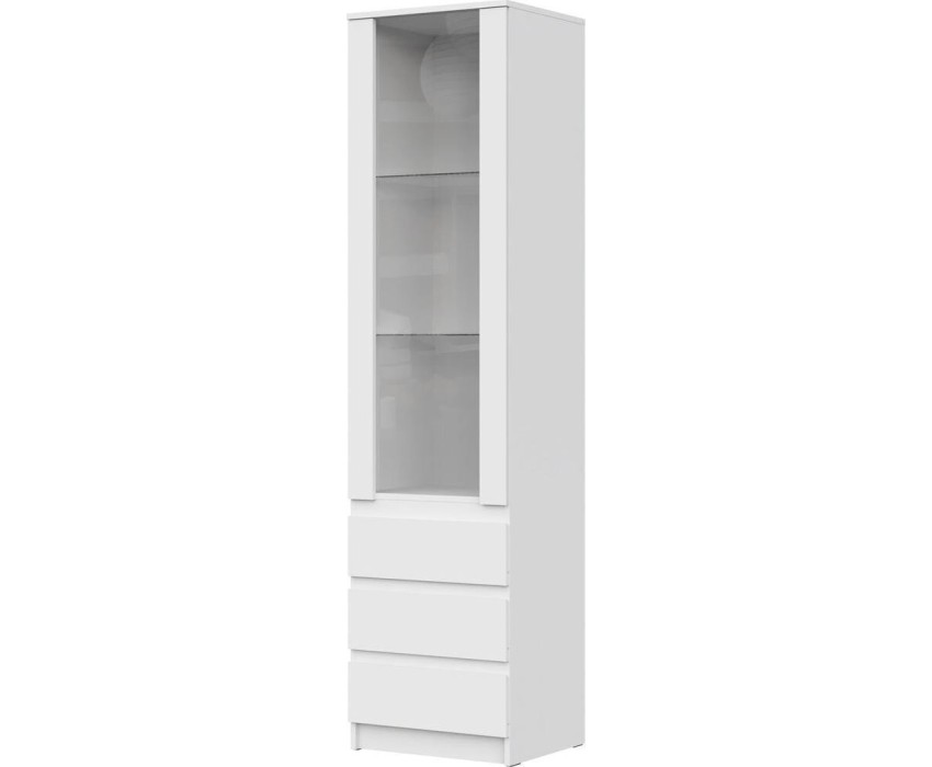 Шкаф-витрина с распашной дверцей со стеклом и тремя ящиками. Корпус и фасад изготовлены из ЛДСП 16 мм. Три цвета на выбор - Белый, Дуб Сонома, Дуб Вотан. Размер изделия (ШхВхГ) 50,1 х 200,3 х 43,3 см.