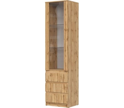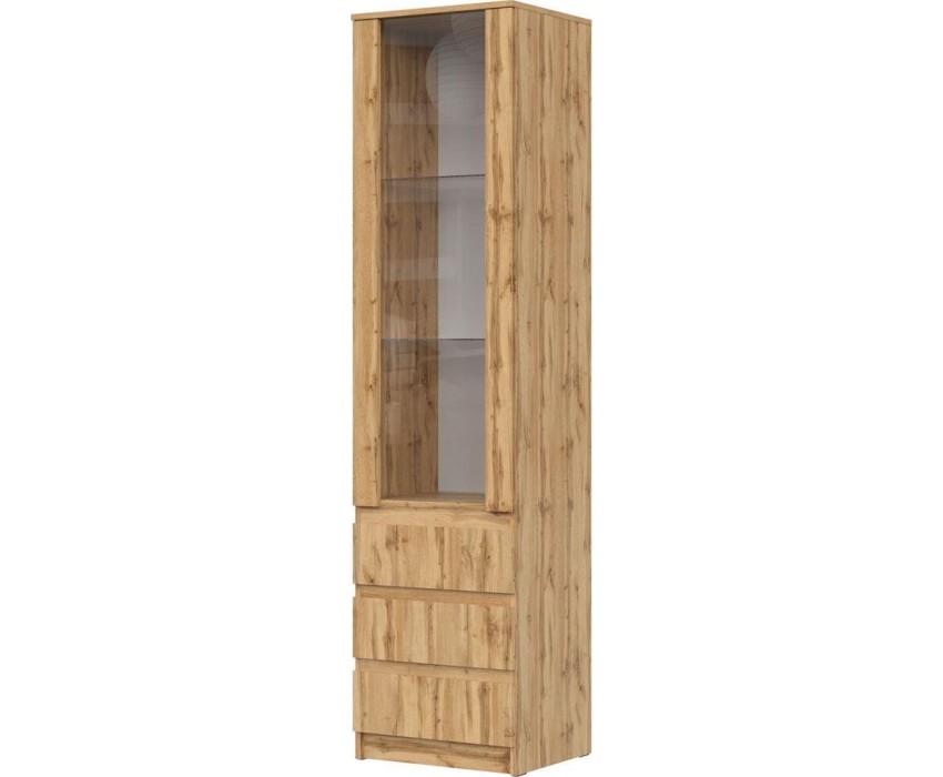 Шкаф-витрина с распашной дверцей со стеклом и тремя ящиками. Корпус и фасад изготовлены из ЛДСП 16 мм. Три цвета на выбор - Белый, Дуб Сонома, Дуб Вотан. Размер изделия (ШхВхГ) 50,1 х 200,3 х 43,3 см.