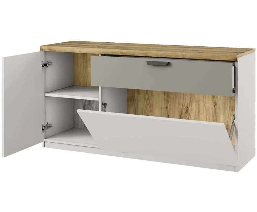 Размер (ШхВхГ, см): 130 х 61.4 х 41 Материал фасада: Высококачественный МДФ Материал корпуса: Высококачественное ЛДСП Цвет корпуса: Персидский жемчуг/Дуб наварра Цвет фасада: Персидский жемчуг Цвет ручек: Темно-серый Цвет вставок: Ирландский ликер
