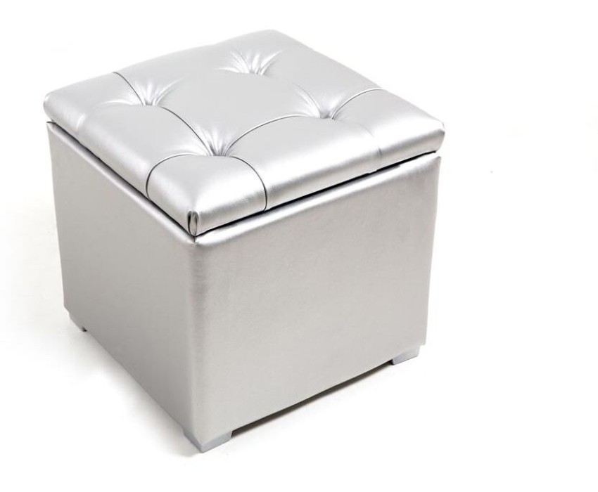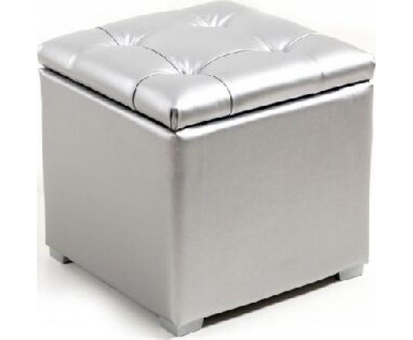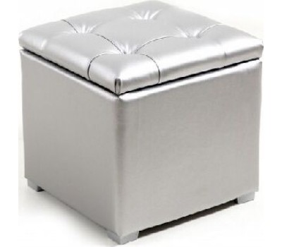 Удобный пуфик Классик для спальни или прихожей. Большой пуф, удобный, устойчивый с большим пространством для хранения и мягкой крышкой. Способ обтяжки сиденья пуфа - каретная стяжка. Размеры: 460х460х450 мм. Цвет экокожи: серебро (С-116).