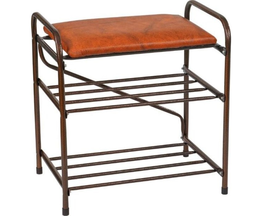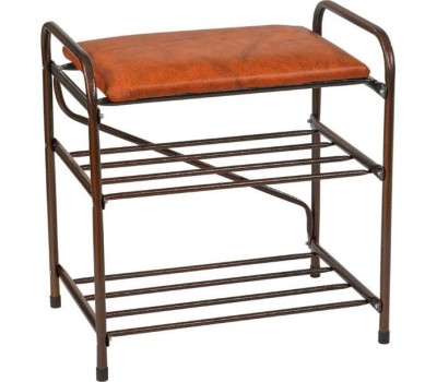 Банкетка-этажерка для обуви 2-х ярусная с мягким сиденьем. ЦВЕТ: коричневый. РАЗМЕР ИЗДЕЛИЯ: 340 x 480 x 520 мм. МАТЕРИАЛ: металл + полипропилен + тканый материал.