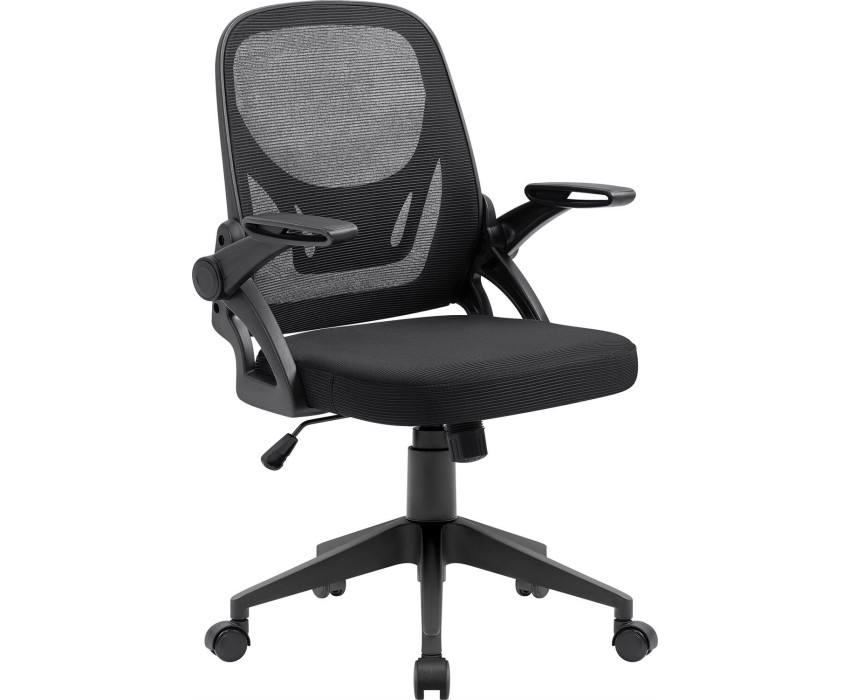 Удобное офисное кресло с поясничным упором и подлокотниками, которые можно поднимать для удобства. Спинка кресла выполнена из плотного сетчатого материала, обивка сиденья - из износостойкой ткани. Также кресло имеет механизм качания.
