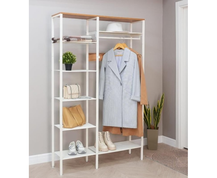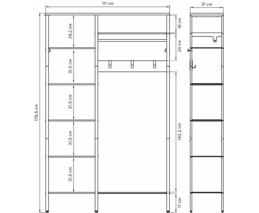 Гардеробная система «ТОРОНТО 48Л» — это функциональное и стильное решение для организации пространства в вашем доме. Она поможет вам максимально использовать свободное место и удобно хранить одежду, обувь и аксессуары. Габариты изделия: 111х31х179,5 см.; Габариты упаковки: 1145х327х108 мм.; Нагрузка на полку ПВЛ - 8 кг.; Нагрузка на полку ЛДСП - 10 кг.; Нагрузка на крючок - 5 кг.; Нагрузка на вешало - 20 кг.