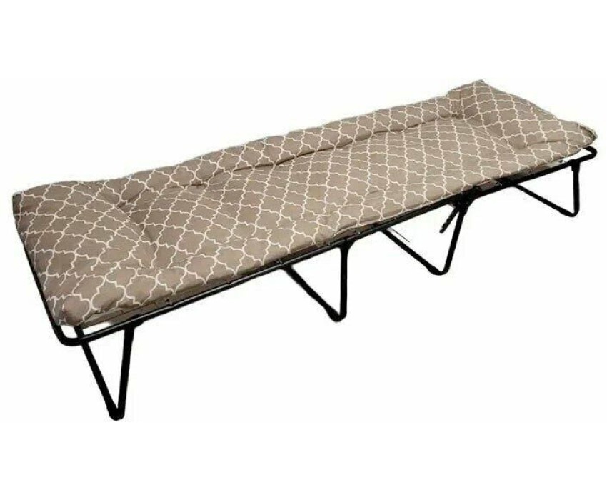 Габаритные размеры изделия в разложенном положении (ДхШхВ) 1950х650х395 мм, Габаритные размеры изделия в сложенном положении, в виде кресла 945х650х850 мм, Максимальная нагрузка: 120 кг. Каркас: труба стальная ф19х0,9; полимерное покрытие; пружина. Матрас: ткань 45% п/э – 55% хлопок, плотность 108 – 111 г/м2, полипропилен, наполнитель матраса крошка поролона, крепление к каркасу осуществляется с помощью пружин. Регулирование спинки: 4 положения. Размер упаковки (длина*ширина*высота), мм : 667х396х986. Вид упаковки: коробка из картона гофрированного, пакеты ПНД. Вес изделия: нетто 7,7 кг.