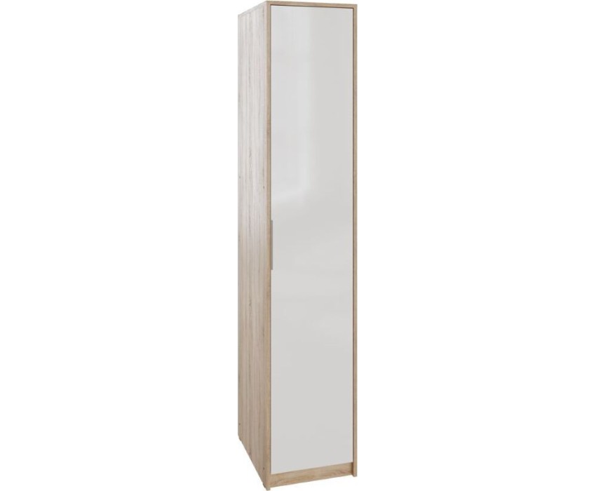 Шкаф - пенал Нордик - удобная и практичная система хранения вещей в спальной комнате, детской или гостиной. Сочетание декоров натурального дерева и белого цвета подчеркнет современный стиль Вашего интерьера. Шкаф удачно впишется даже в небольшую квартиру благодаря своей компактности и зрительной легкости. Внутри шкафа расположены пять вместительных полок для хранения одежды и постельных принадлежностей. Шкаф можно дополнить другими элементами коллекции Нордик: комодом, прикроватными тумбами, тумбой под ТВ, письменным столом. Материал каркаса: ЛДСП дуб сонома Материал фасадов: ЛДСП белая аляска Ручки: металл Коллекция Нордик Ширина 418 Высота 2 110 Глубина 575 Цвет фасадов Белая Аляска Цвет каркасов Дуб сонома светлый Материал фасадов ЛДСП Материал каркасов ЛДСП Тип мебели Шкаф Срок службы (мес.) 120 Гарантия (мес.) 24