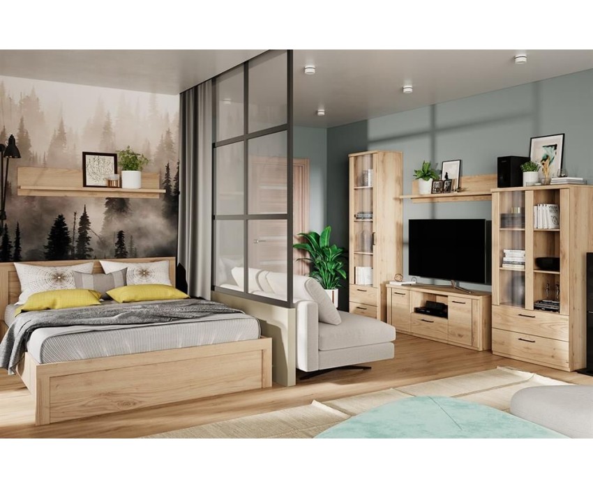Модульная мебель АНРЭКС DOORSET Шкаф с витриной 1V2S. Цвет ДУБ НАВАРРА (2 уп.)
