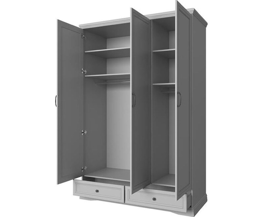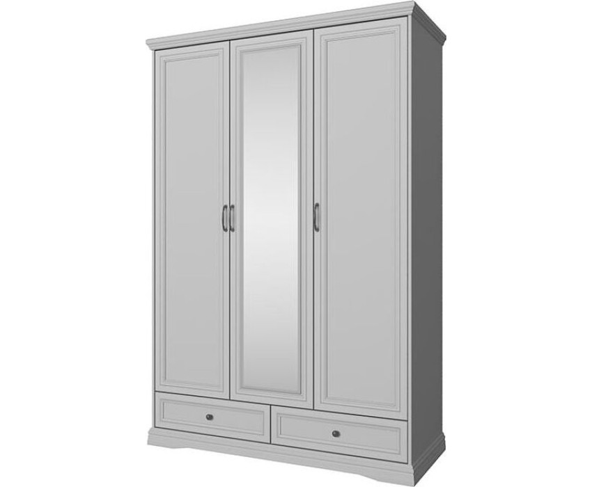 Шкаф Валенсия 3DG2S Z— вместительный трехстворчатый шкаф с зеркалом на центральной двери. За дверями расположены два разноразмерных отделения с полками и штангами для плечиков. В нижнем отделе шкафа находятся два широких выдвижных ящика.