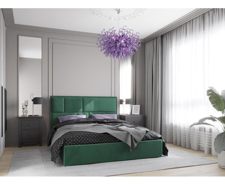 Интерьерные модели кроватей сочетают в себе все самое необходимое для удобства и отдыха и, конечно же, в них присутствует особый стиль. Оригинальный дизайн изголовья кровати Madison привлекает внимание, а мягкие боковины и лаконичное изножье обеспечивают комфорт и уют. Размеры (Ш\В\Г): 1718 х 1139 х 2180мм. Спальное место: 1600 х 2000мм. Обивка: Велюр Зеленый Плотность ткани 1м2: 500 г/м2. Устойчивость к истиранию: 50 000 циклов. Изголовье: ЛДСП 16мм, окутанная тканью ; Изножье: ЛДСП 16мм, окутанная тканью; Царги: ЛДСП 16мм, окутанная тканью. Опоры: Металл, черный, ма товый. Выдерживает нагрузку до 500кг. Наполнение: Изножье, изголовье - поролон 40 - 50мм|царги - поролон - 20мм. Внутренний короб: ЛДСП 10 мм; Дно короба: ЛДСП 10 мм. Кровати необходимо дополнительно комплектовать ортопедическим основанием с подъемным механизмом.
