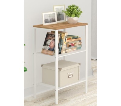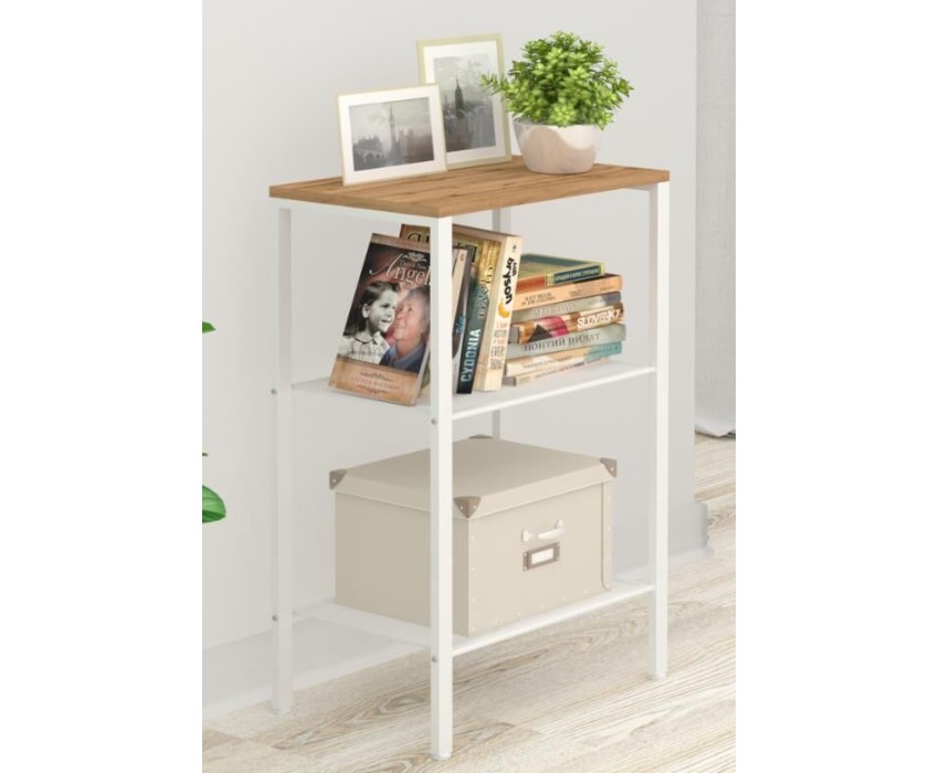 Изделие предназначено для хранения домашних и офисных предметов. Представляет собой стеллаж с 3 полками, выполненными из просечно-вытяжного листа и верхней полки из ЛДСП. Разборный каркас состоит из стальной профильной трубы 15х25 мм. В комплект входят регулируемые пластиковые опоры. Все изделие окрашено однотонной, порошковой краской. Допустимая нагрузка на полки до 8 кг.