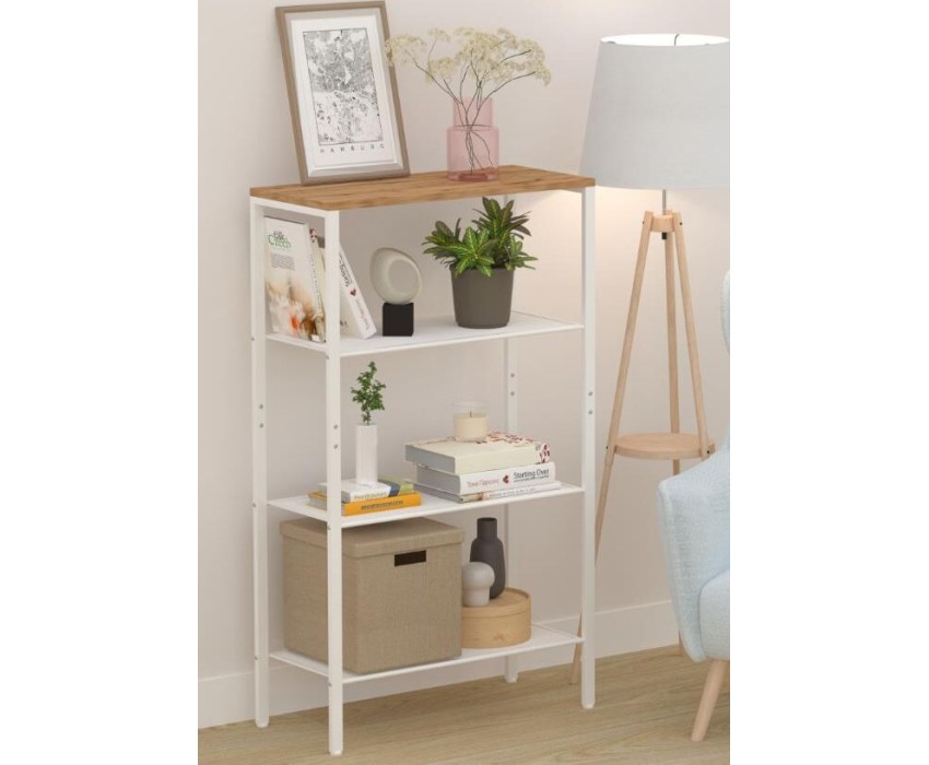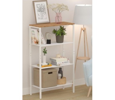 Изделие предназначено для хранения домашних и офисных предметов. Представляет собой стеллаж с 4 полками, выполненными из просечно-вытяжного листа и верхней полки из ЛДСП. Разборный каркас состоит из стальной профильной трубы 15х25 мм. В комплект входят регулируемые пластиковые опоры. Все изделие окрашено однотонной, порошковой краской. Допустимая нагрузка на полки до 8 кг.