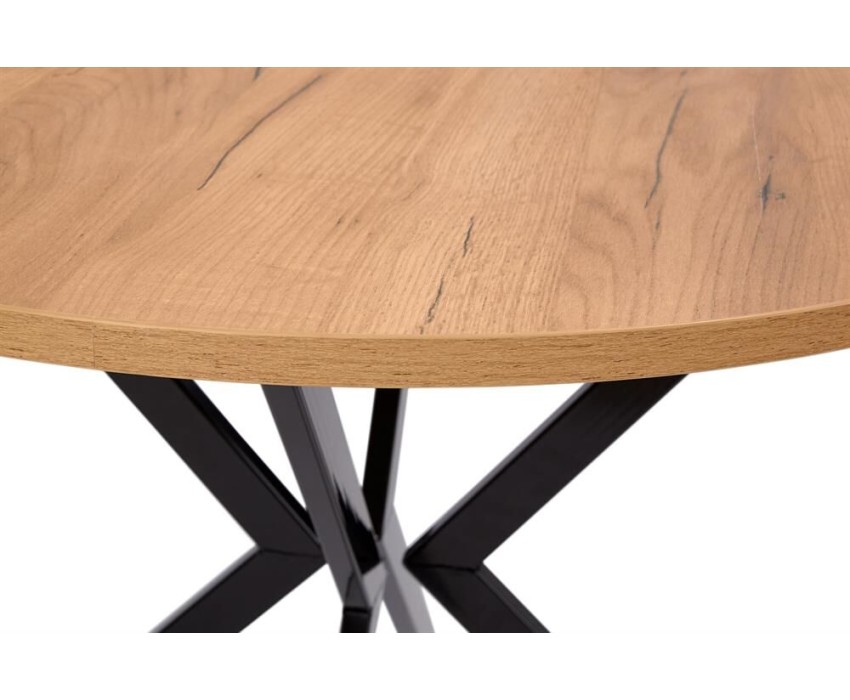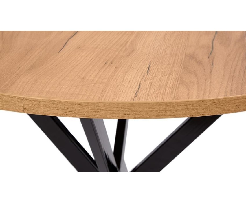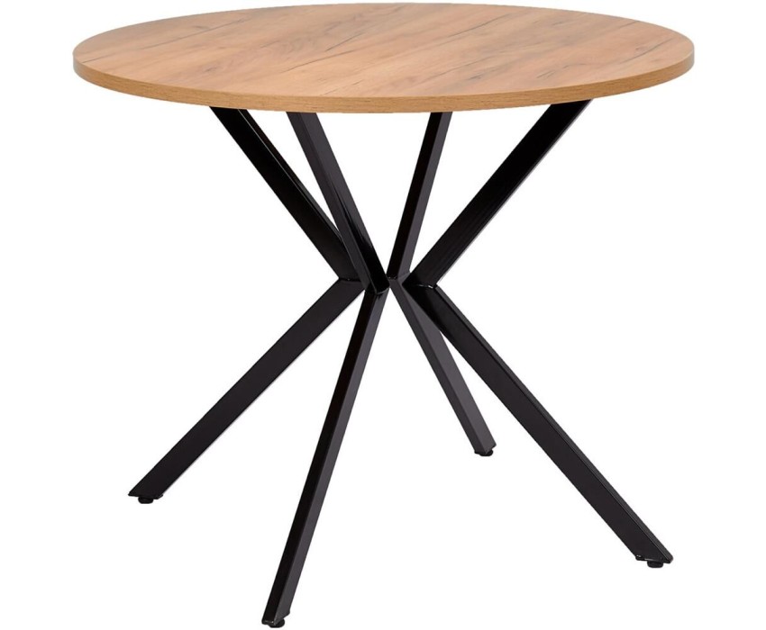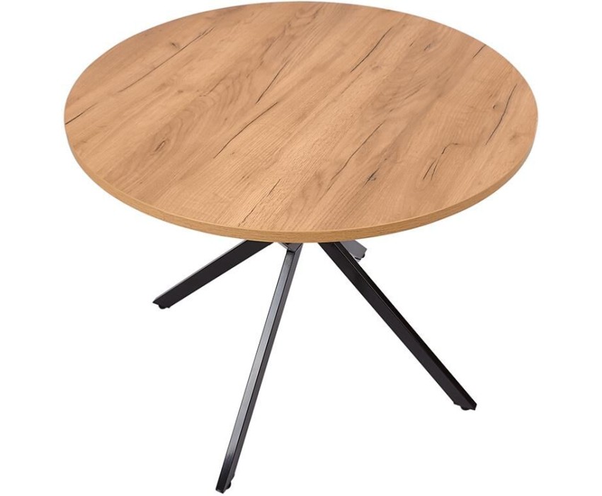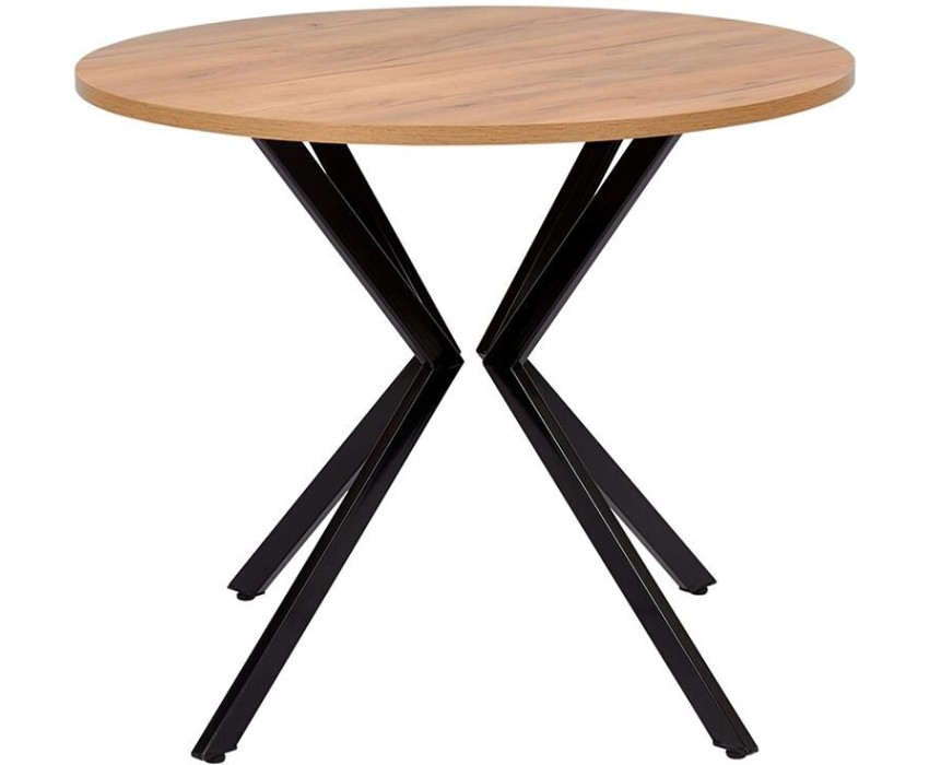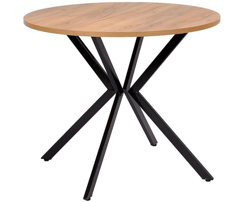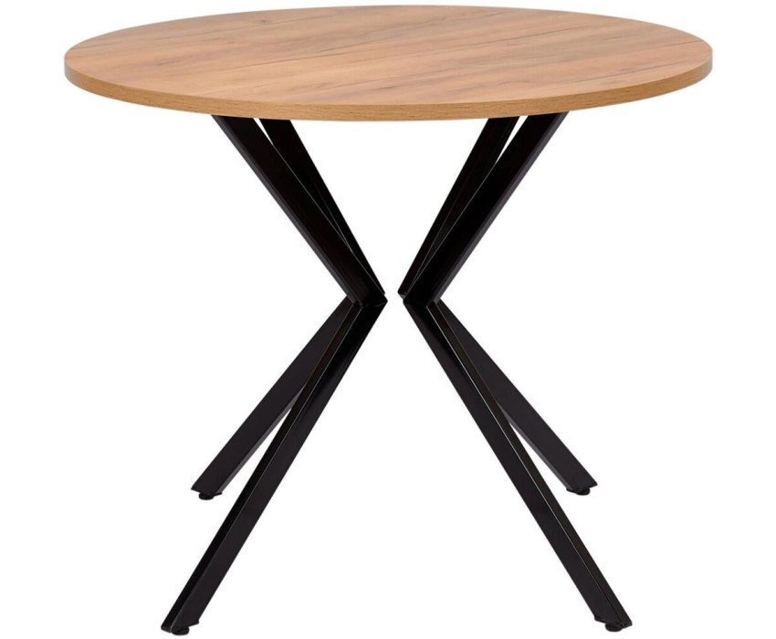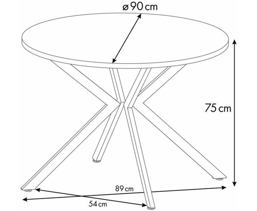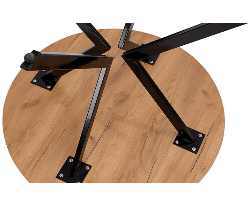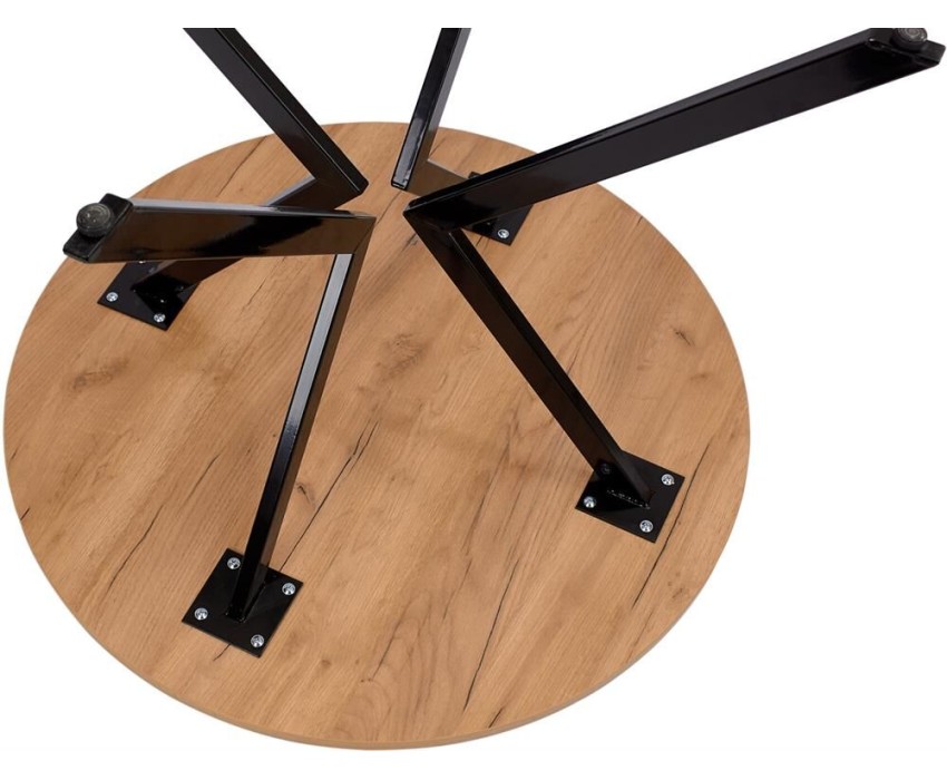 Обеденный стол Polini Home Istanbul станет настоящим акцентом интерьера Черные V-образные опоры придают изделию современный и оригинальный вид. Цветовое решение дуб крафт золотой и черный не просто привлекает внимание-оно создает гармоничное взаимодействие между теплом дерева и строгими линиями металла. Столешница, выполненная из высококачественной ЛДСП толщиной 22мм и облицованная противоударной ПВХ кромкой 2мм. Оттенок дуба, с его мягкими золотистыми нотками, создает ощущение солнечного света, проникающего в дом, и идеально сочетается с элегантными черными опорами. Диаметр столешницы составляет 90см. Максимальная нагрузка: 30кг. Черные V-образные опоры выполнены из прочного металла толщиной 1,5мм с сечением профиля 40х20мм. Каждая опора имеет возможность регулировки высоты до 15мм. Опоры крепятся к столешнице за счет 16 винтов М6х12 – простая и быстрая сборка. Габариты стола: 90х90х75см.Расстояние между опорами: 54см. Расстояние между опорами по диагонали: 89см.