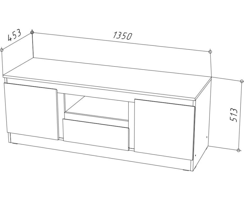 Центральную часть ТВ тумбы серии Stern занимает выдвижной ящик, над ним имеется открытая ниша. По обе стороны от ящика расположены отделения с глухими дверцами. Основание и столешница изготовлены из ЛДСП 16 мм.. Три цвета на выбор - Белый, Дуб Сонома, Дуб Вотан. Функционально - широкий модульный ряд позволяет создавать любой интерьер. Эстетично - все фасады имеют скошенный край. Практично - на столешнице хватит места для панели с самой большой диагональю, а внутри удобно спрятать все провода, хранить пульты дистанционного управления, игровые приставки, видеоаксессуары.. Размер изделия (ШхВхГ) 135 х 51,3 х 45,3 см.
