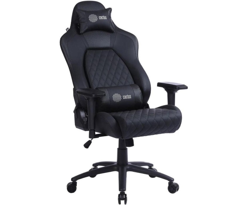 CACTUS Кресло игровое CS-CHR-130-M с вибромассажем черный экокожа с подголов. крестов. черный