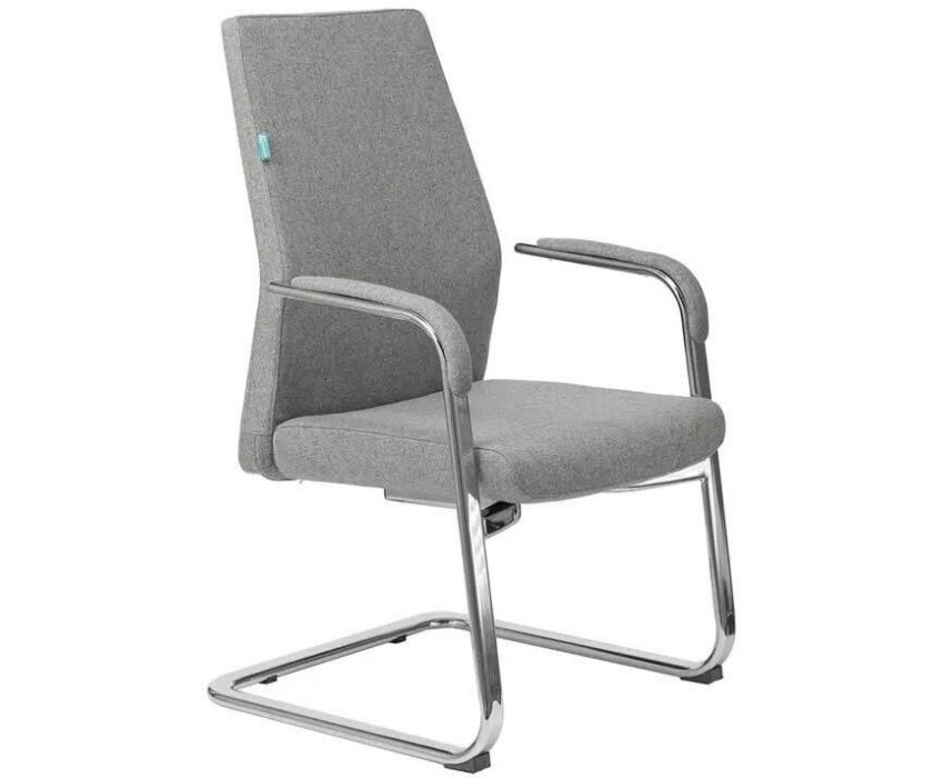 БЮРОКРАТ Кресло _JONS-LOW-V серый низк.спин. полозья металл хром