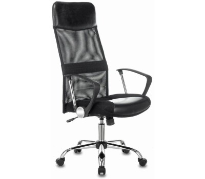 БЮРОКРАТ Кресло руководителя CH-600SL черный экокожа/сетка крестов. металл хром