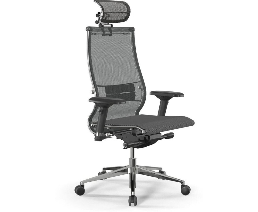 МЕТТА Кресло Samurai S-3 сетка с подголов. крестов. алюминий хром
