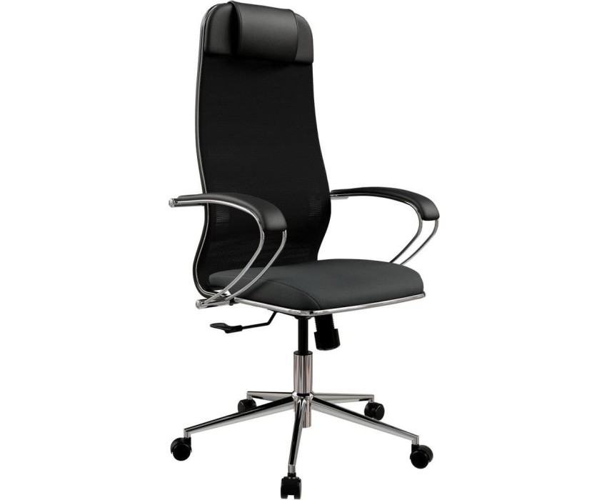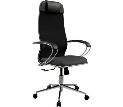 МЕТТА Кресло ErgoLife Set 15 черный сиденье черный сетка/ткань с подголов. крестов. сталь хром
