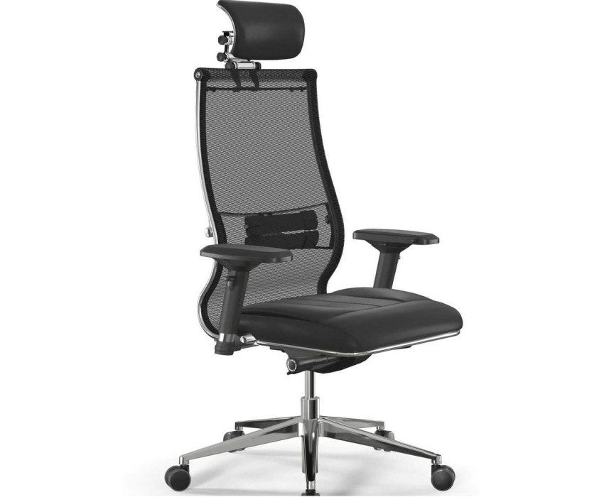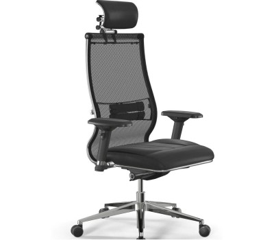 МЕТТА Кресло Samurai SL-3 черный сиденье черный сет./экокожа с подголов. крестов. алюминий хром