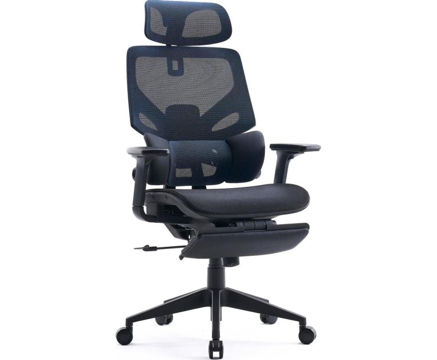 CACTUS Кресло CS-CHR-MC01-BLBK синий сиденье черный сетка/ткань с подголов. крестов. пластик подст.для ног
