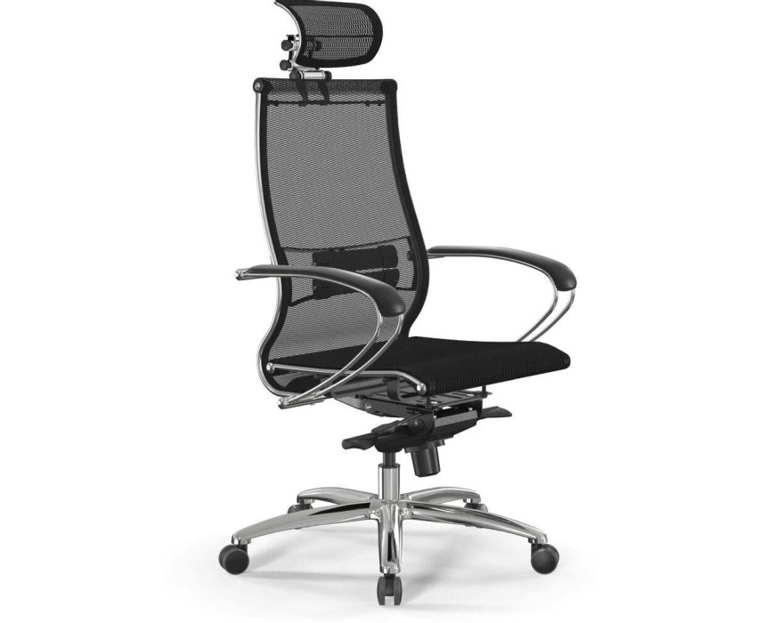 МЕТТА Кресло Samurai S-2 черный сиденье черный сетка с подголов. крестов. алюминий хром