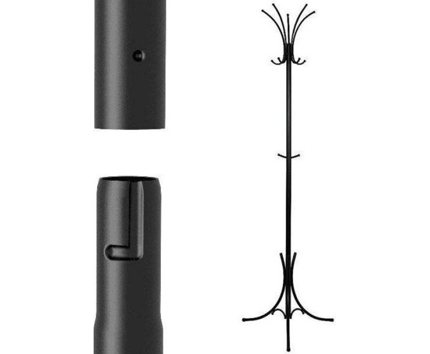 шапки и т.п.; на нижней части удобно разместить зонты или поставить сумку; допустимая нагрузка до 5 кг на крючок, надежная сварная конструкция, состоит из 2-х частей; при равномерном размещении на крючки можно повесить большое количество одежды; внутри верхней части вешалки между крючками удобно размещаются перчатки