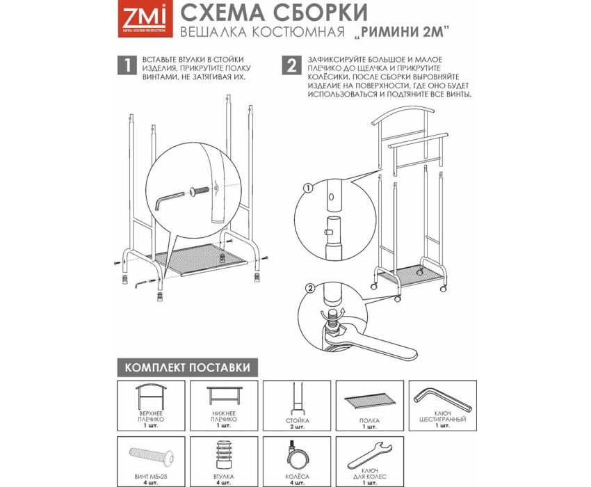 Назначение Для размещения одежды. Материал Сталь, полимерное покрытие, пластик. Габариты (Д*Ш*В) 47х30х114 см. Максимальная нагрузка, кг до 3 кг на плечико.