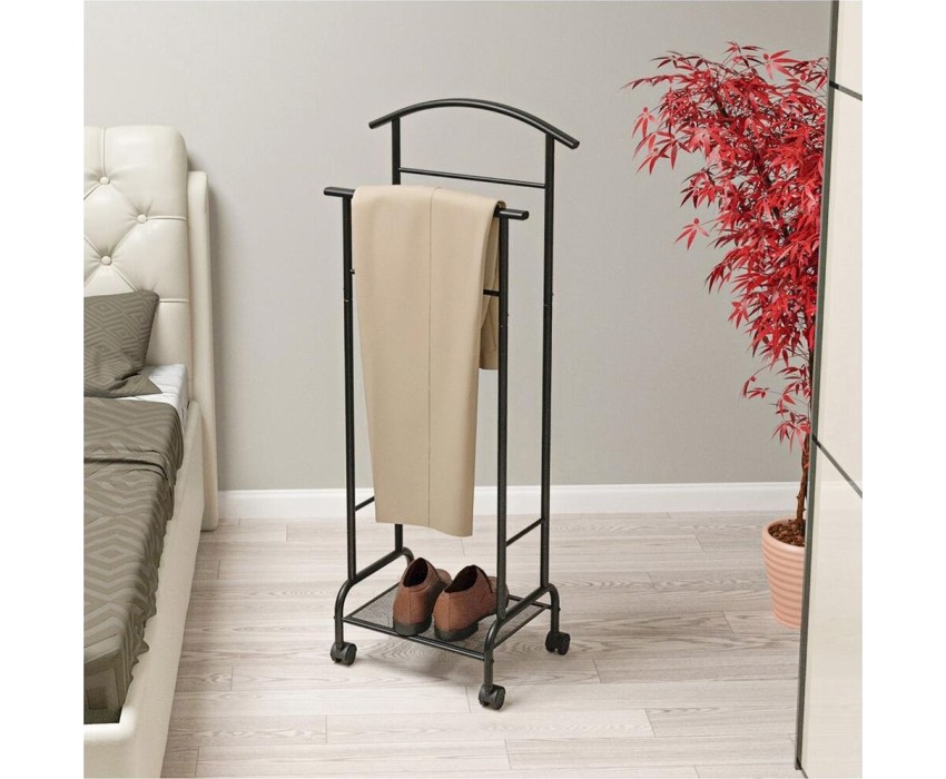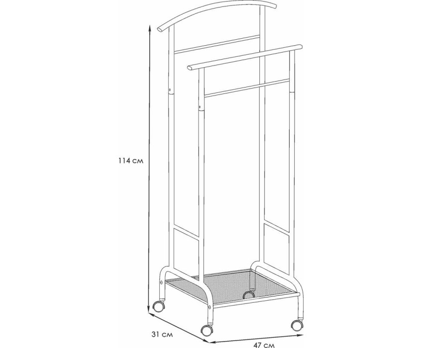 Назначение Для размещения одежды. Материал Сталь, полимерное покрытие, пластик. Габариты (Д*Ш*В) 47х30х114 см. Максимальная нагрузка, кг до 3 кг на плечико.