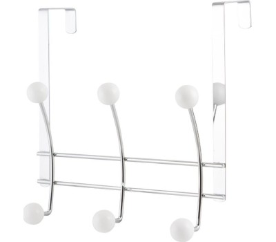 Вешалка навесная с 6ю крючками Крепится на дверь (без сверления, клея и пр.) размер: 25*23*8 см длина внутреннего крючка: 4.5CM (толщина полотна не более 4,5 см) Макс. нагрузка — 6 кг материал: хром.металл, пластик