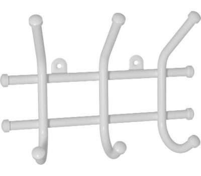 Надежная сварная конструкция. - компактная вешалка с 3-мя крючками. - допустимая нагрузка до 7 кг на крючок. - классическая форма. - Расстояние между крепёжными отверстиями 85 мм. Материал сталь, полимерное покрытие. Габариты (Д*Ш*В) 23х8х16,5 см.