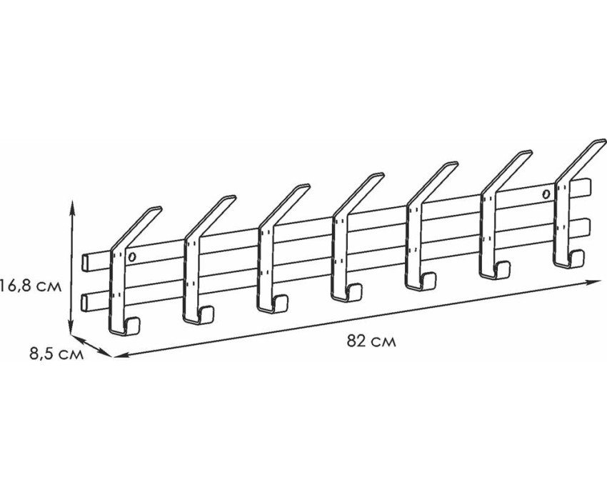 Назначение Для размещения одежды. Материал сталь, полимерное покрытие. Индивидуальная упаковка 84,2 х 17,4 х 9,1 см. Габариты (Д*Ш*В) 82 х 8,5 х 16,8 см. Максимальная нагрузка, кг до 7 кг на крючок. Уход Протереть влажной тряпочкой с мыльным средством. Температура применения, °C от 0 °C до +30 °C.